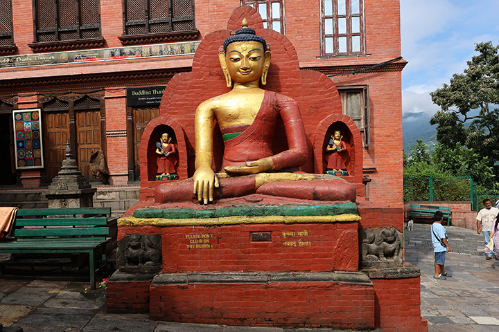 Swayambhunath ligger på en bakke højt hævet over det omkringliggende landskab og dateres tilbage til 406 e.Kr., og stedet havde allerede i 13. århundrede etableret sig som et vigtigt, buddhistisk pilgrimsrejsecenter med besøgende fra hele verden.