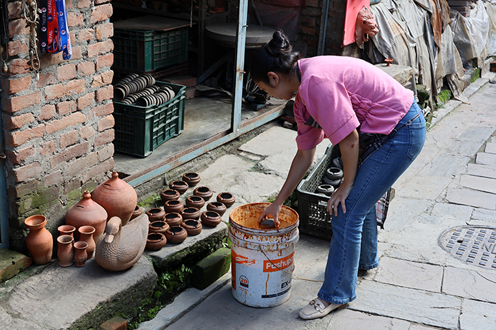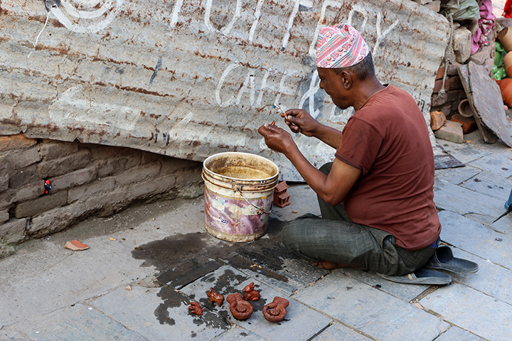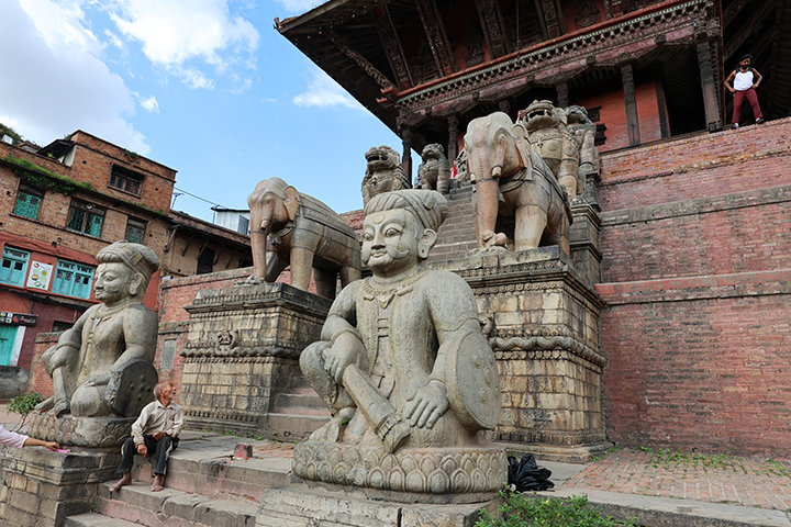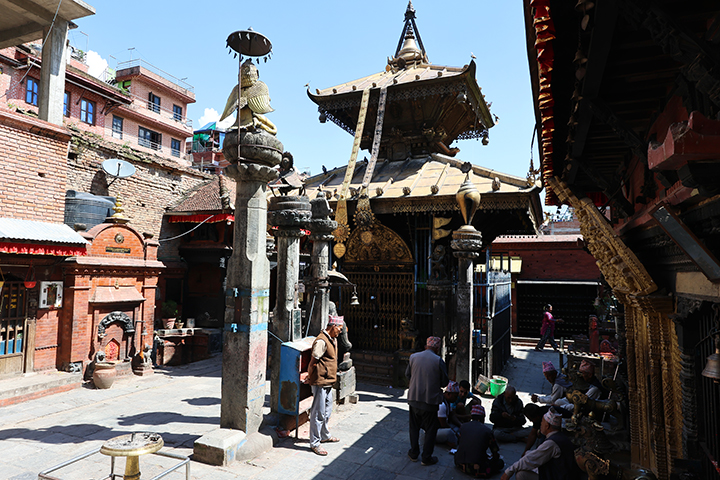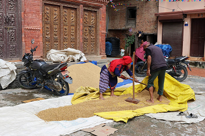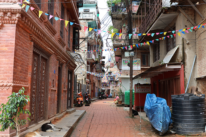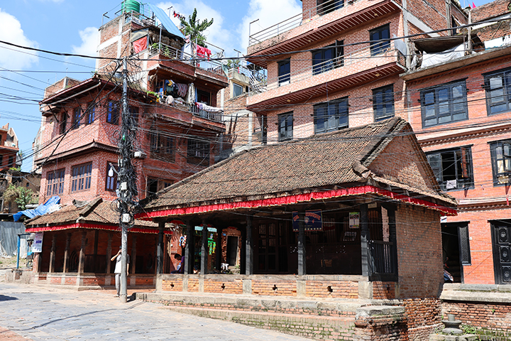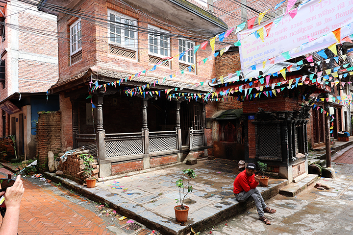 På vores vej gennem byen virkede det som at gå tur i et levende museum for Newar-kultur med traditionelle huse, smalle gyder og åbne gårdhaver, men mange steder så vi også bygninger, der blot henlå som murbrokker som et resultat af jordskælvet i 2015 – og her i byen havde den nepalesiske regering ikke prioriteret at få ryddet op efter det ødelæggende jordskælv dengang.