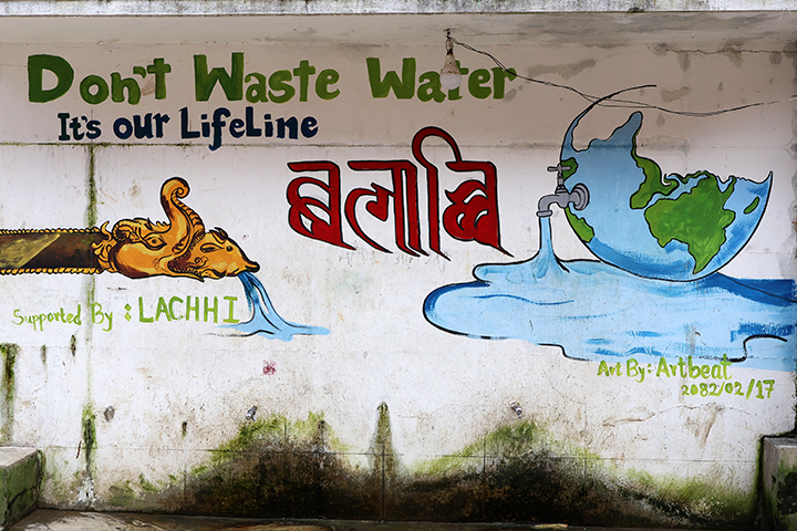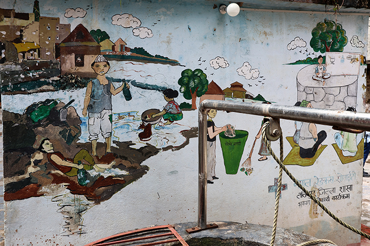 Lige i nærheden af De Pukhu-dammen viste et lidt falmet vægmaleri, at man godt her på stedet var klar over betydningen af rent drikkevand – når nu ellers levebetingelserne ikke var optimale, og hvor større farer lurede i horisonten eller undergrunden…
