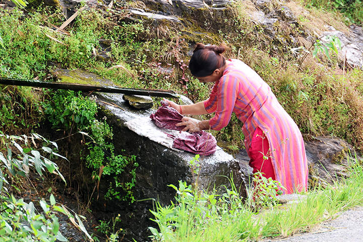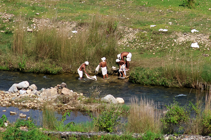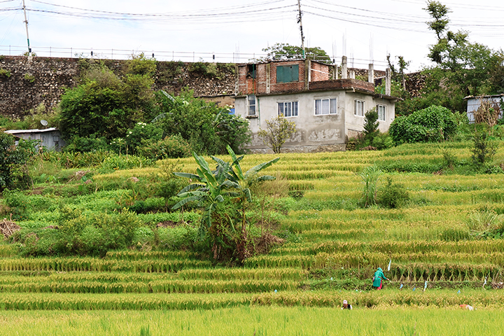 Fra Swayambhunath kørte vi nu sydpå og ud af selve Kathmandu for at besøge et par interessante Newar-landsbyer, Bungamati og Khokana, og på vejen derud passerede vi flere steder, hvor de seneste dages regnvejr havde truet med oversvømmelse af lavereliggende områder – lidt i stil med, hvad der skete sidste år, hvor oversvømmelser i området havde kostet mange menneskeliv og ødelagte en del huse. I år var det – indtil nu – dog ikke gået så vidt.