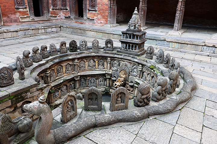 Vores første besøg her på Durbar-pladsen gjaldt Mul Chowk, der er grundlagt af Srinivasa Malla i 1666 og er centrum for de rituelle aktiviteter, der foregår i Patan-paladset. Det er paladsets største gårdsplads, omgivet af tre templer for Taleju, bla. paladsets højeste bygning, Degutalle.
