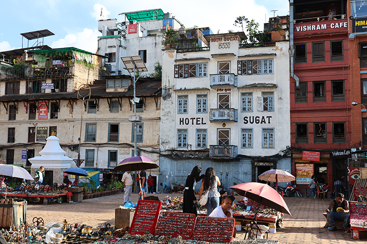 Efter modtagelsen og et par obligatoriske billeder blev vi kørt til vores hotel for de kommende 3 nætter, Hotel Holy Himalaya, i det livlige Thamel-kvarter.