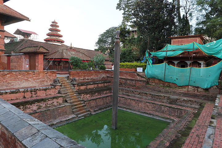På vores videre vej passerede vi en næsten kvadratisk, større dam, De Pukhu, der fungerer som et vandreservoir for byen. Nu om dage har den ikke den funktion mere, men bruges af de lokale som fiskedam.