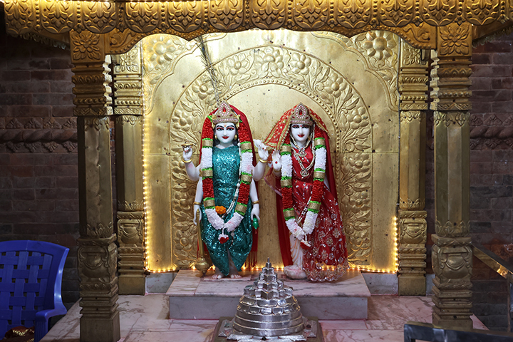 Da roen igen faldt på, kunne vi nyde den flotte gård, hvor der var imponerende udskæringer i bjælkerne og flere forgyldte statuer – bla. af flodgudinden Yamuna stående på en skildpadde.