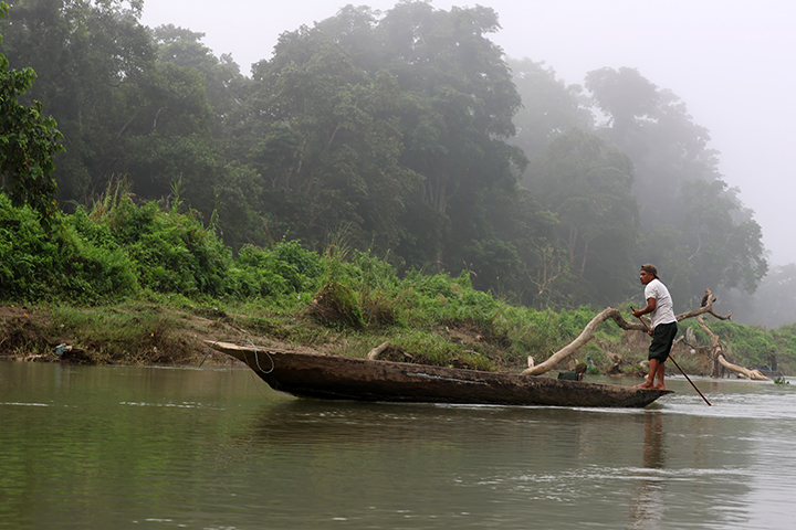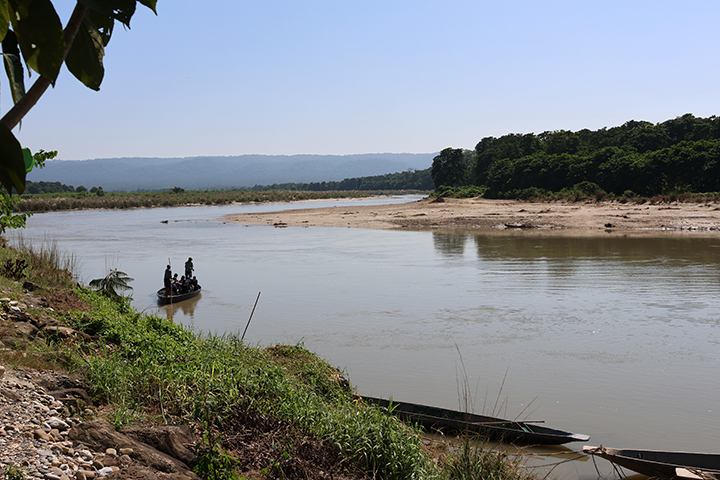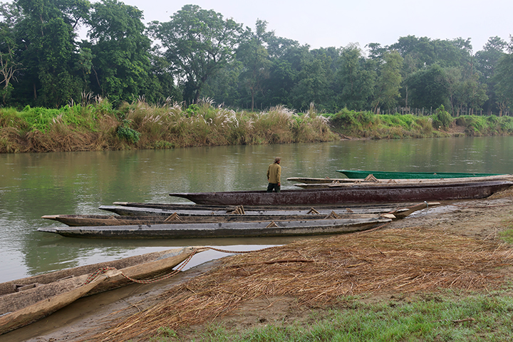 Så efter frokosten blev vi kørt til ‘havnen’ i Sauraha, hvorfra vi i små kanoer blev fragtet over Rapti-floden til den anden flodbred til startstedet for vores 4-5 timers safari i nationalparken.