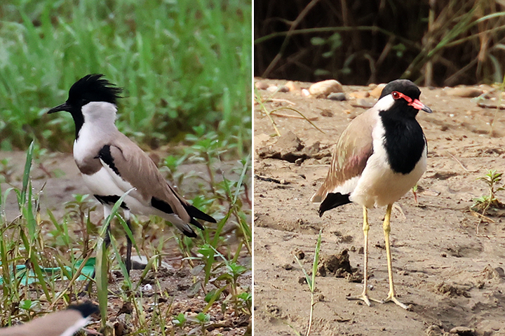 Flodvibe (Vanellus duvaucelii) (tv) og rødlappet vibe (Vanellus indicus) (th)