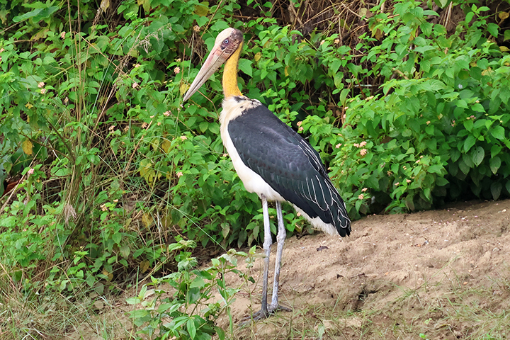 Da vi kørte videre fra besøgscentret så vi – ret højt i et træ og desværre siddende med ryggen i vores retning – en asiatisk åbennæbsstork (Anastomus oscitans). En stor, men kedeligt udseende fugl, der har navn efterdet karakteristiske mellemrum, der dannes mellem over- og undernæbbet.