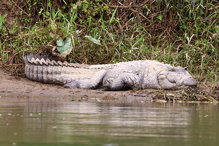 Imellem de mange iagttagelser af fugle blev der dog også lige lejlighed til – et par gange – at se den anden slags krokodiller, der lever i Chitwan, nemlig sumpkrokodiller (Crocodylus palustris), der lå og hvilede sig på flodbredden. Sumpkrokodillen, der sjældent når en længde på 5 meter og dermed er mindre end gharialen, jager mange forskellige byttedyr, f.eks. fisk, slanger, skildpadder, fugle og mindre pattedyr som aber, egern, gnavere og endda hunde.