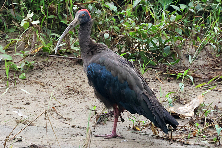 Herefter var det tilbage til fuglene, og det næste, vi så, var nogle eksemplarer af den rødnakkede ibis (Pseudibis papillosa), der også kendes som indisk sort ibis, og som – i modsætning til alle andre ibis-arter – egentlig ikke er så almindelig i vådområder, men lige så gerne opholder sig på tørre sletter og marker. Studier har vist, at den rødnakkede ibis også kan leve i byområder og leve af den føde, de kan finde her, og de er endda set bygge rede på f.eks. lygtepæle, også selv om de er placeret på travle losse- og markedspladser.