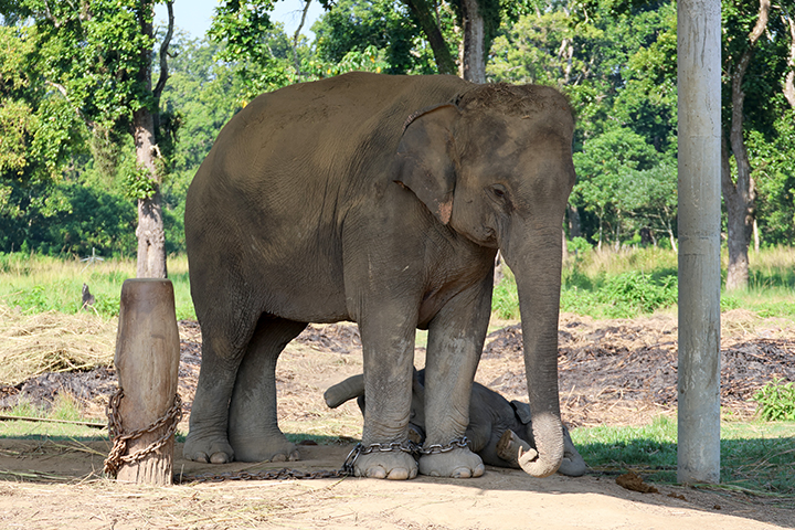 I centret er der pt. mere end 40 elefanter, både hanner, hunner og kalve, og der er gennem årene født mere end 50 kalve her. Elefanterne står bundet (under halvtag og i læ for solen), og de overnatter i centret, lige som de fodres og trænes her, men i løbet af dagen slippes de løs og befinder sig i skovområderne uden for centret – indtil de bliver hentet eller selv kommer tilbage, når mørket falder på.