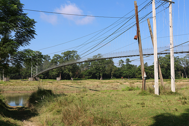Hængebroen over Budhi Rapti River tilbage mod Sauraha