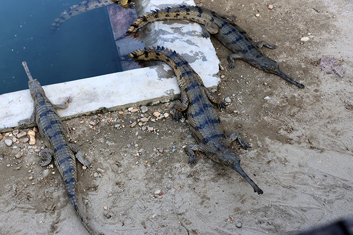 Efterhånden var vi ved at være lidt toilettrængende, så det passede meget godt, at det næste stop var ved Gharial Conservation Breeding Center, der var blevet oprettet af den nepalesiske regering her i Chitwan i 1978 for at redde gharialen for udryddelse. Vi vandrede rundt i centret, der havde en del større bure med gharialer i forskellige stadier af deres liv – fra æg til voksne individer, der var klar til at blive udsat i den frie natur igen.