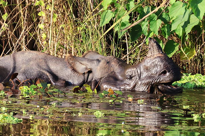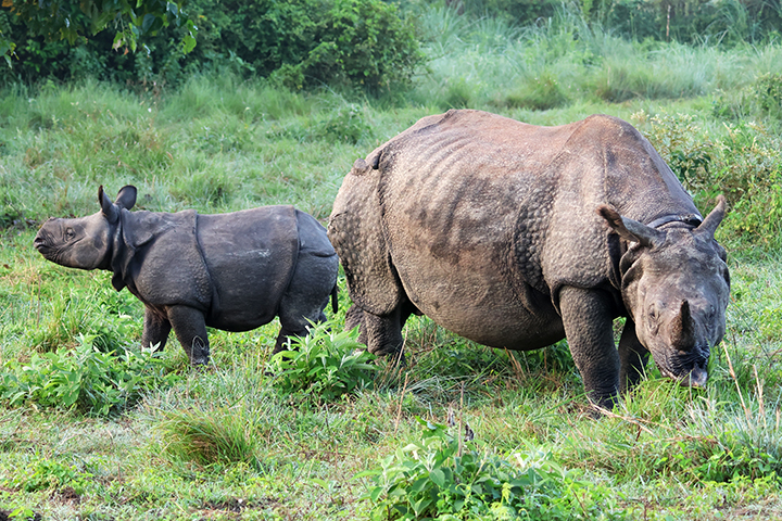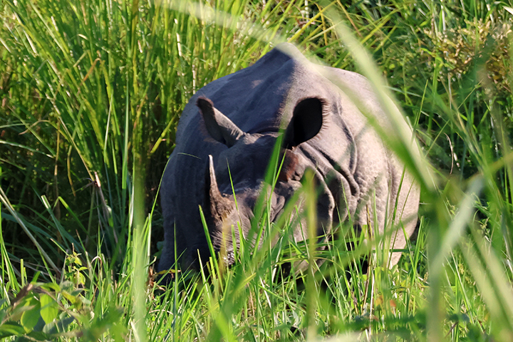 Men bedst som al håb var ude, fik vores guide øje på et pansernæsehorn (Rhinoceros unicornis), der gik roligt i det høje græs ret tæt ved vejen og græssede fredeligt. Pansernæsehornet, der er den næststørste art næsehorn, lever kun i Nepal og Assam – i 12 beskyttede områder, hvoraf Chitwan er det ene. Arten har været kraftigt truet af udryddelse, og i begyndelsen af det 19. århundrede var der under hundrede dyr i naturen; i dag menes den samlede bestand at være på mere end 4000.