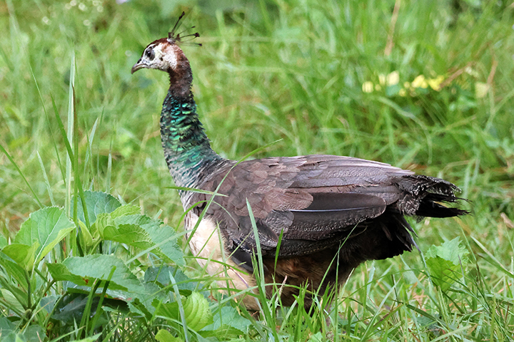 Præcis klokken 7:30 gik portene op, og vi kunne – efter at have ordnet formalia (registrering og betaling) – køre ind i området, og hvor vi efter få meter stødte på en flok indiske påfuglehunner (Pavo cristatus) i det høje græs.