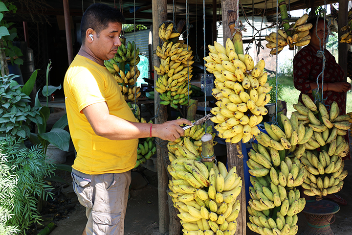 Efter denne lille pause gik det videre retning hovedstaden med endnu et lille stop – ved en bod i vejkanten, hvor man kunne købe små bananer – særdeles lækre. Vores guide Narayan købte en hel pose bananer, som han efterfølgende delte rundhåndet ud af, så vi kunne prøve dem.