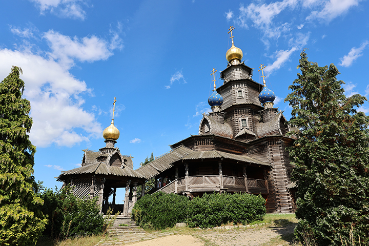 Den sidste bygning, vi besøgte på området, var den 27 meter høje Sankt Nicolauskirke med ikke mindre end otte forgyldte kupler, der er bygget som en kopi af den russisk-ortodokse Kristi Forklarelseskirke fra 1765 i den nordrussiske landsby Kozlyatievo.