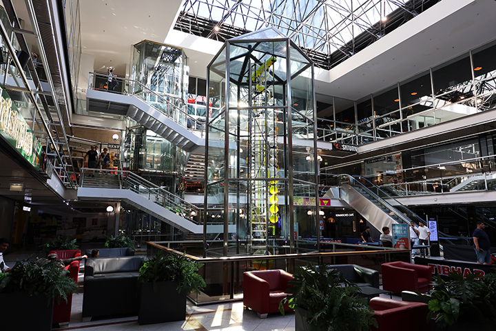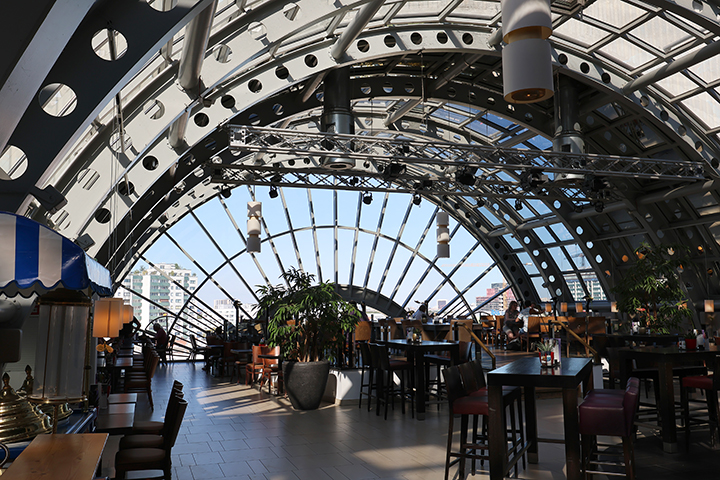Vi gik en tur rundt på flere etager i stormagasinet, inden vi slog os ned og fik lidt let aftensmad på øverste etage, 7. sal, der var en vinterhave med restauranter.