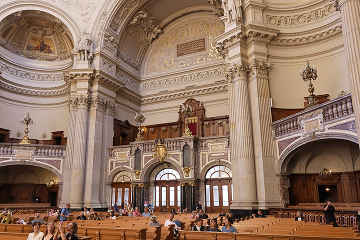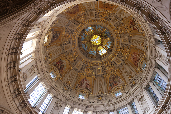 Herefter brugte vi lidt tid i Gedächtnis-kirkens mindesal, hvor der var flere interessante mosaikker i loftet og på væggen, der relaterede sig til Wilhelm den førstes tid som kejser.