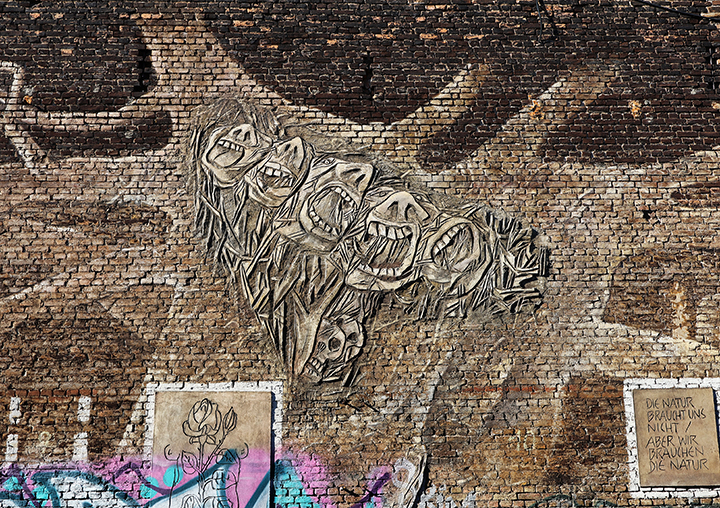 Interessant udsmykning af en mur ved Savignyplatz