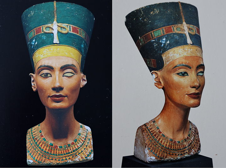 Fotos af foto af Nerfertiti – uden og med redigering