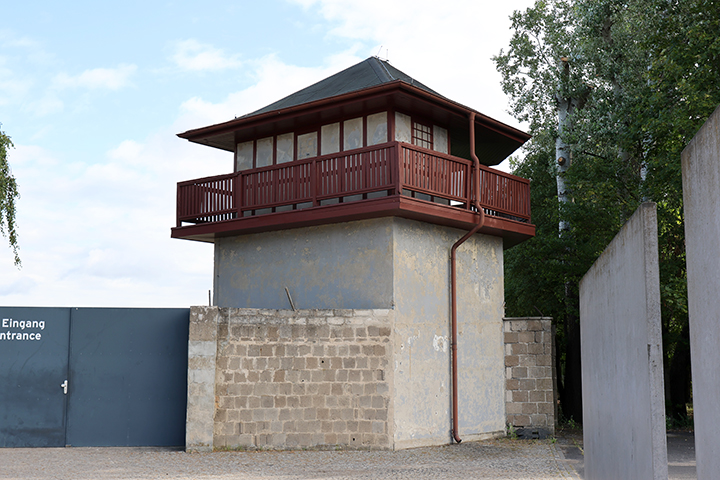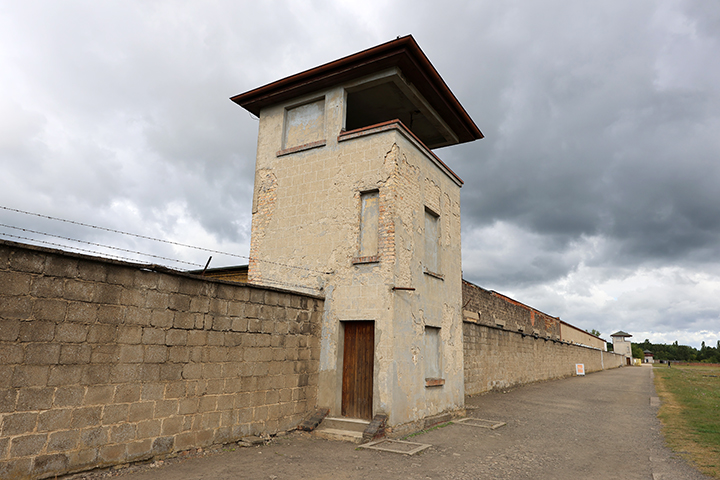 Det første vi ser af KZ-lejren Sachsenhausen: Et vagttårn