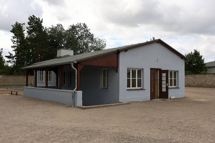 Man fik adgang til lejren gennem en indgangsport, og før man kom til denne, kunne man på sin venstre side se den bygning, der var kommandantens bolig.